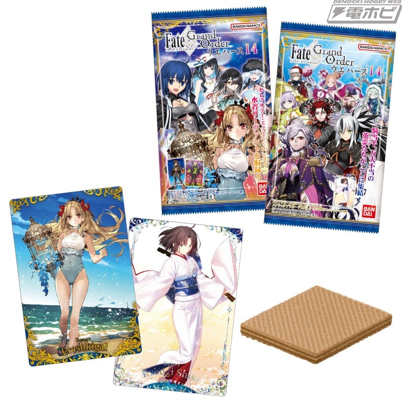 In Japan, Bandai is scheduled to release the 14th installment of its popular wafer snack series, “Fate/Grand Order Wafer 14,” on November 10. This product features collectible metallic cards inspired by the hit mobile game Fate/Grand Order, showcasing stunning in-game illustrations of beloved characters.