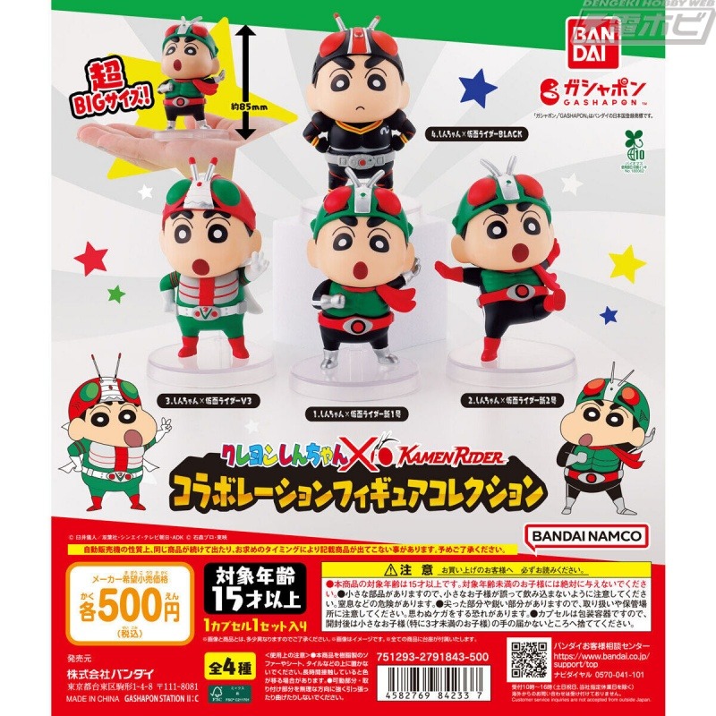 This special Gashapon series brings together two beloved icons — the popular anime Crayon Shin-chan and the legendary tokusatsu hero Kamen Rider — for a dream collaboration.